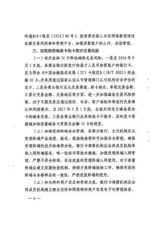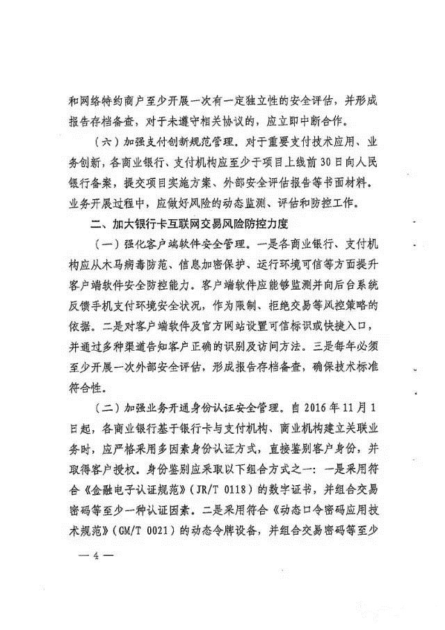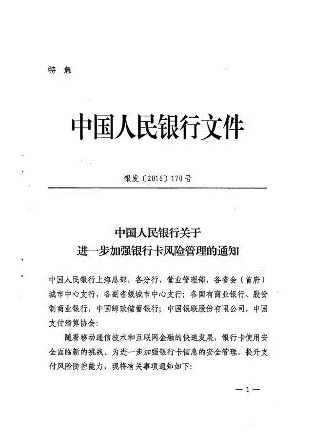 央行下发特急通知央行《中国人民银行关于进一步加强银行卡风险管理的通知》 , , ,给各机构 , , ,此次通知主要在面对移动通信技术和移动金融迅速发展的情况下 , , ,银行卡支付安全方面面临着新的挑战 , , ,央行此次文件覆盖的内容较全面的对参与银行卡支付产业各机构给出比较明确的管控指导方向!